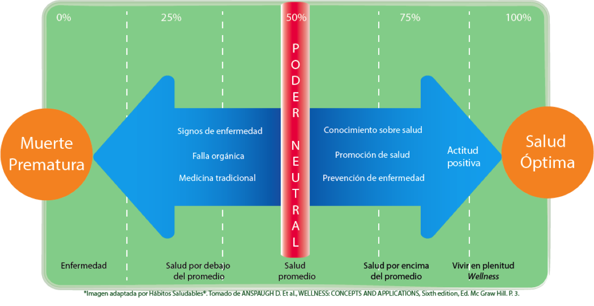 El cuadro explica lo que es la vida saludable. Existen dos extremos: la muerte